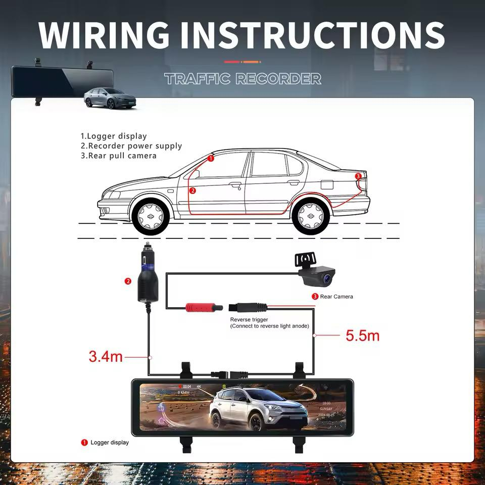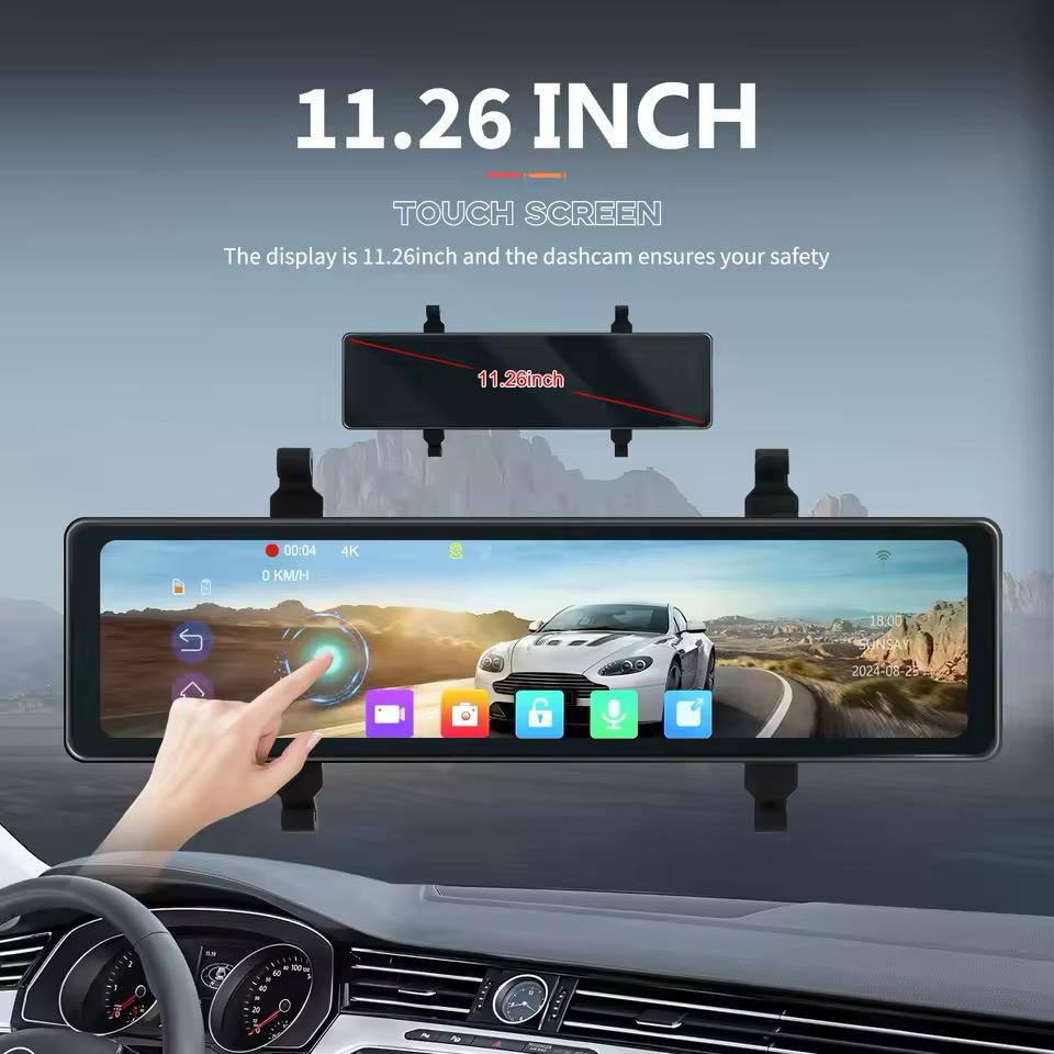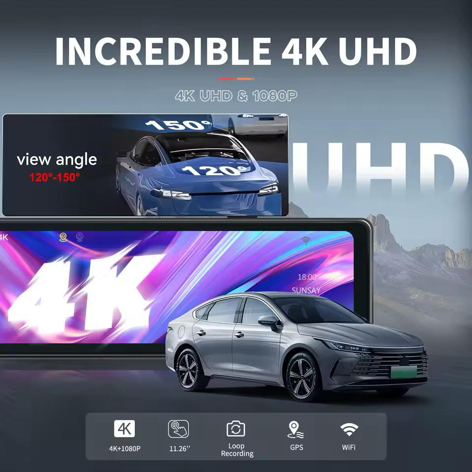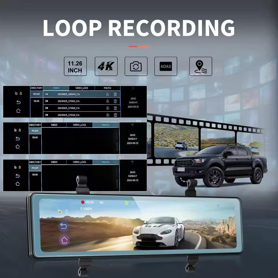 1. Rezoluție 4K față și 1080p spate. Glisați în sus și în jos pe ecran pentru a regla cu ușurință unghiul de vizualizare, iar camera frontală poate trage de cablu pentru a regla vizualizarea. Pixelii HD vă pot ajuta să obțineți informații eficiente despre imaginile video pentru a vă proteja siguranța la volan.