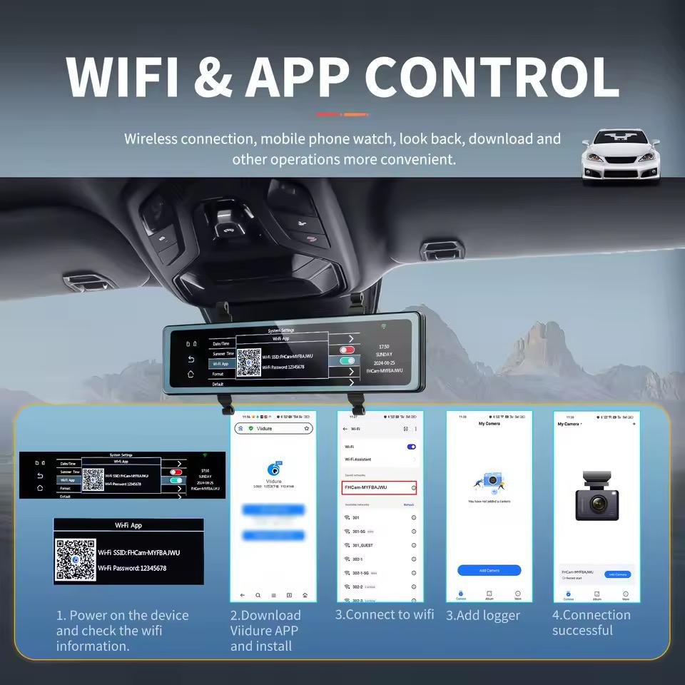 8. Echipat cu funcție WiFi și aplicație, conectați înregistratorul la smartphone prin WiFi, puteți vizualiza videoclipul live, reda, descărca videoclipul, face fotografii și puteți împărtăși momentele minunate ale călătoriei dvs. prin WiFi și aplicație.